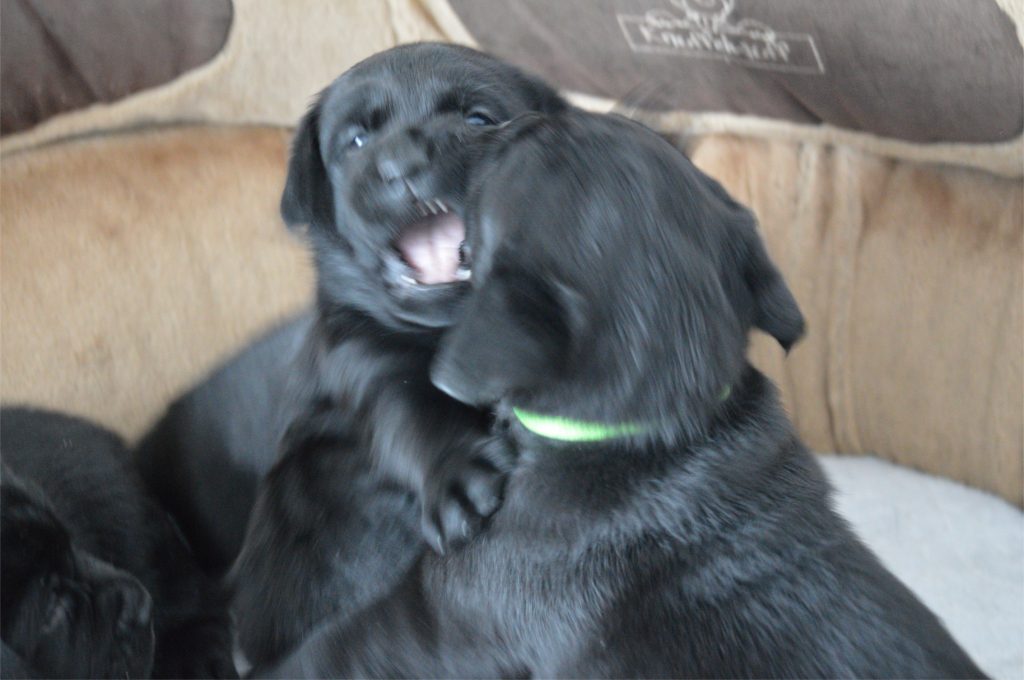 Endlich sollte es auch bei Mary soweit sein, dass sie ihren ersten Wurf Welpen haben darf. Die zeitliche Verspätung sollte aber kein Hinderniss sein, dass auch Mary durch die tolle Verpaarung mit Bobbie eine große Familie hat. In der Trächtigkeit hat sich Mary aber dann doch bis zum 65. Tag Zeit gelassen, aber dann ging alles schnell. Innerhalb von nicht mal 4 Stunden hat unser „kleiner Muck“ 7 tollen Babies das Leben geschenkt. Waren wir großer Hoffnung, dass durch die Verpaarung auch Foxred-Welpen den Wurf bereichern, aber die Vererbung der Farbe Schwarz von Mary hat gezeigt, dass dem nicht so war: 6 schwarze Welpen (5 Rüden und 1 Hündin) sowie ein einziger Foxred Rüde haben den Wurf vollendet.