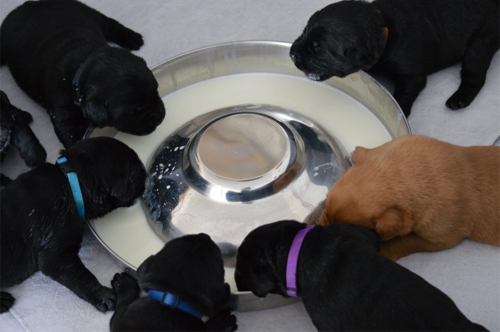 Die Aufzucht durch Mary war mehr als vorbildlich, die Welpen wurde von Mama liebevoll umsorgt, geschmust, gesäubert und ernährt – eine bessere Mama hätten wir uns nicht wünschen können. Unsere Bonnie hat auch von Anfang an schon bei der Geburt fleißig mit-geholfen und war in der Aufzucht für die Kleinen „der größte Welpe“.