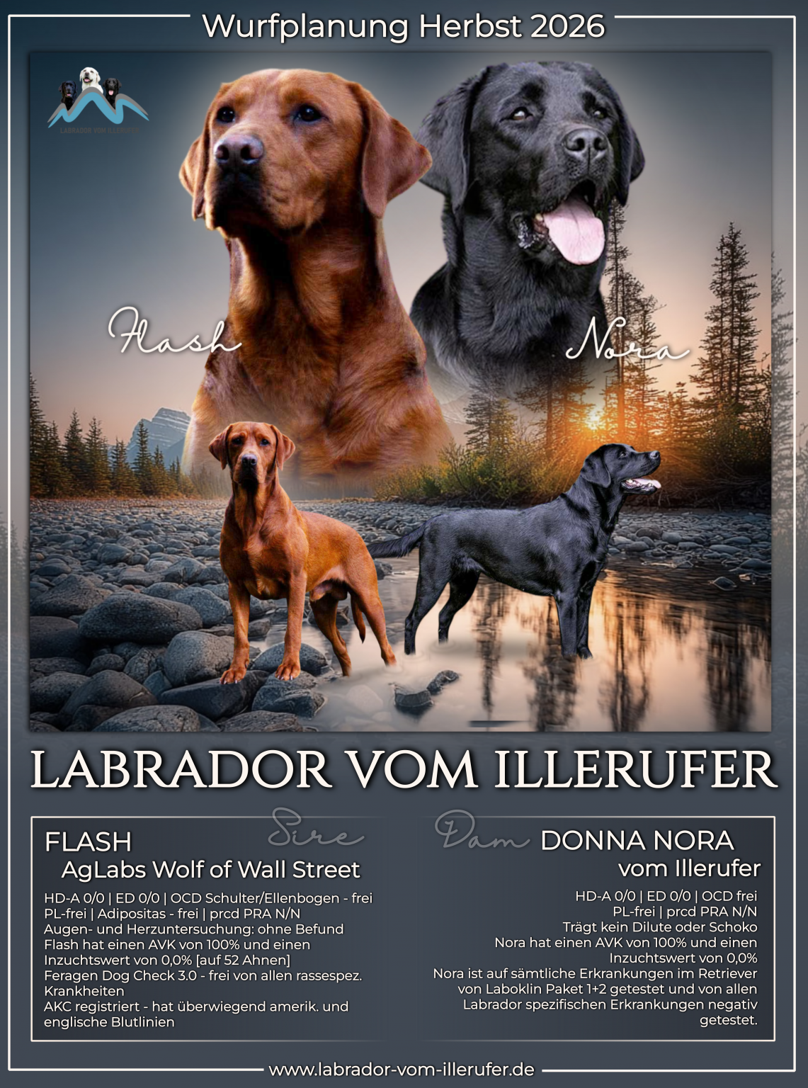 Wir sind schon am planen und geben hiermit die Verpaarung für 2026 bekannt. Es wird ein Wiederholungswurf von Nora und Flash geben. Die Welpen aus dem G-Wurf 2025 waren einfach in allen Punkten ein voller Erfolg. Die sportliche Linie von Nora und Flash hat sich auch in diesem Wurf abgezeichnet und es sind sehr vielversprechende Welpen geworden.